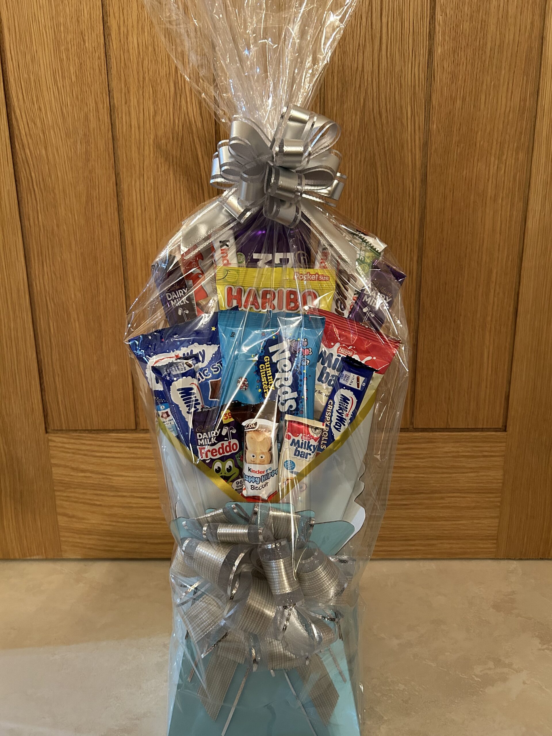 Say hello to the cutest little treat bouquet for your little one! Perfectly designed in a soft baby-blue theme, this gorgeous toddler bouquet is packed with gentle, age-appropriate favourites that little hands will love. Filled with a carefully chosen selection of toddler-friendly sweets and chocolates, it’s the sweetest way to celebrate birthdays, milestones, good behaviour, or just to make them smile!