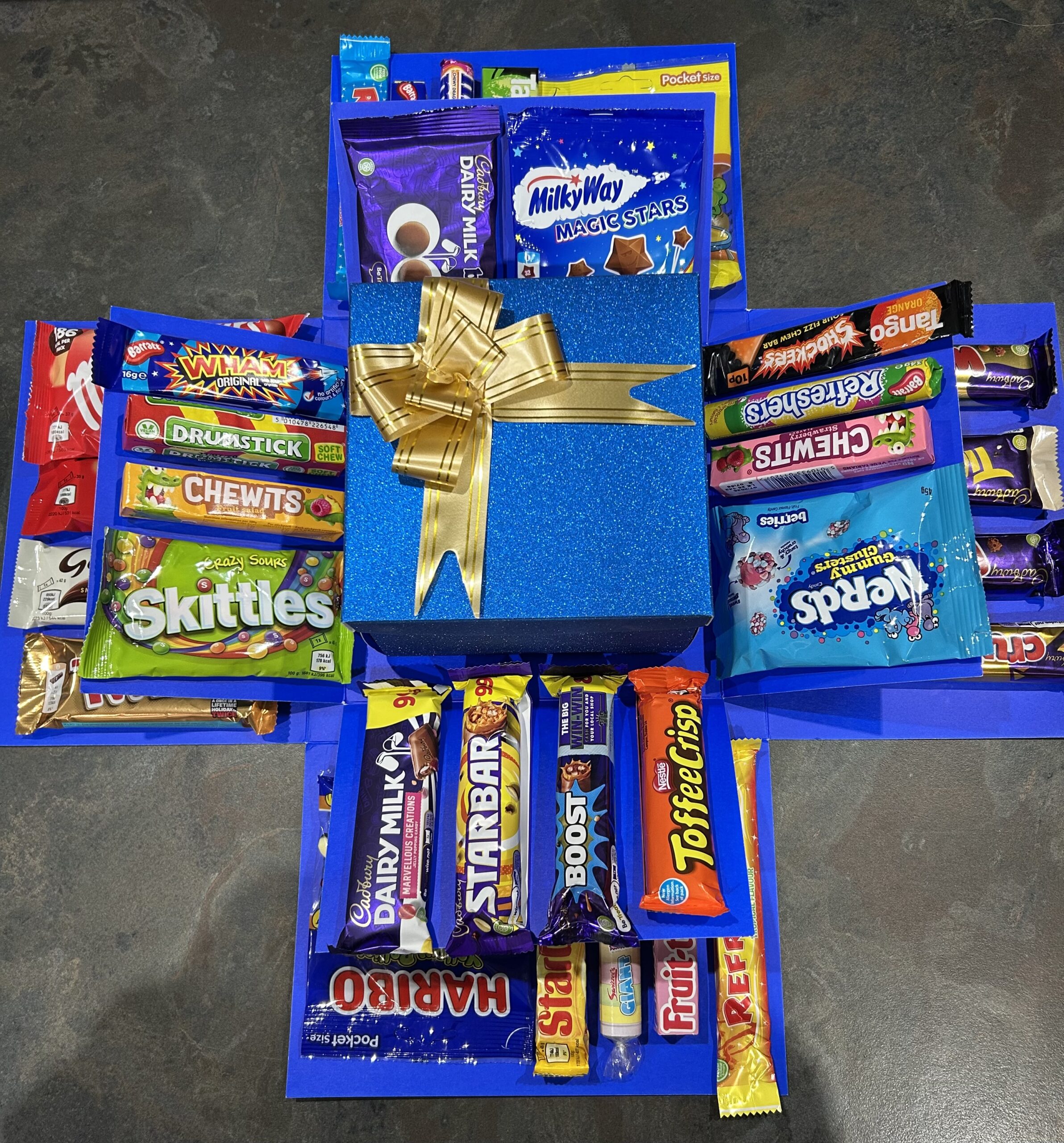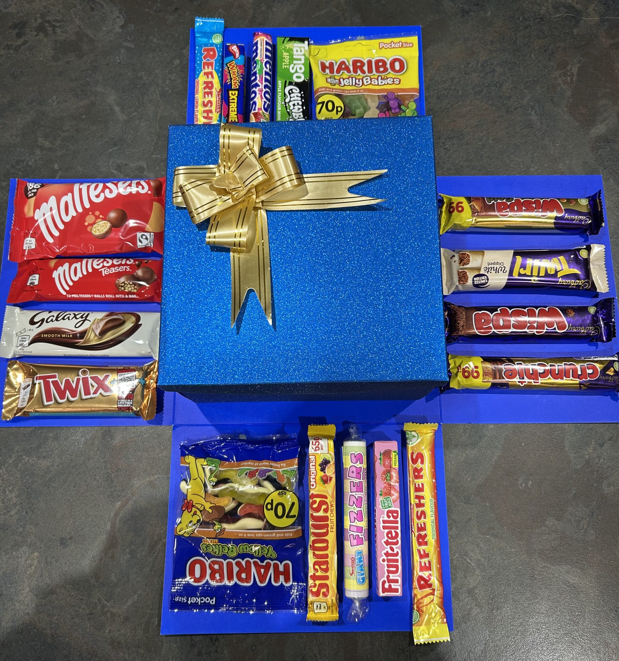 Blue Sparkle/Gold Explosion Box 4 Layer (Mixed Chocolate & Sweets)