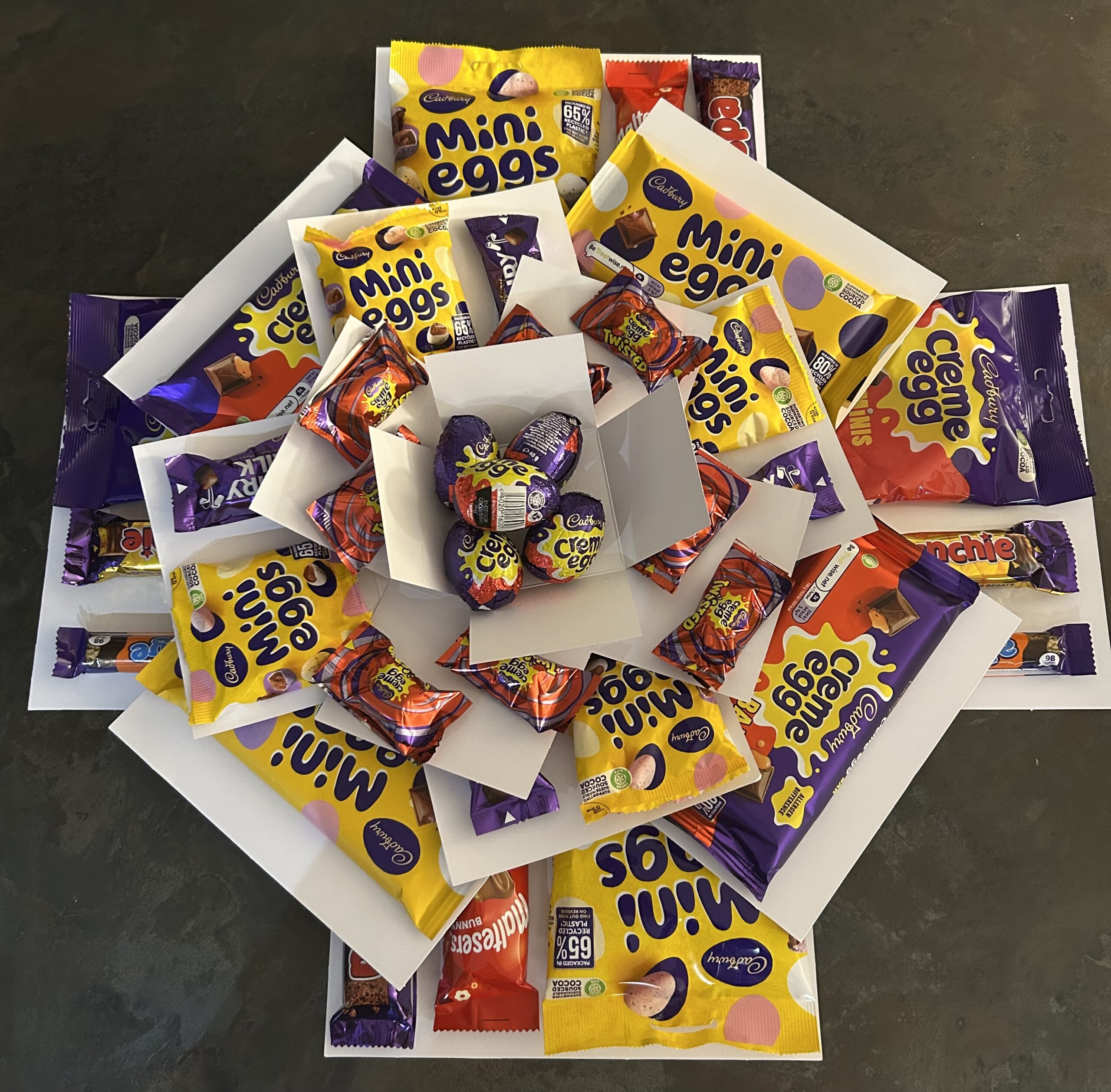 Lift the lid and watch layer after layer explode open, packed FULL of your favourite Easter treats!