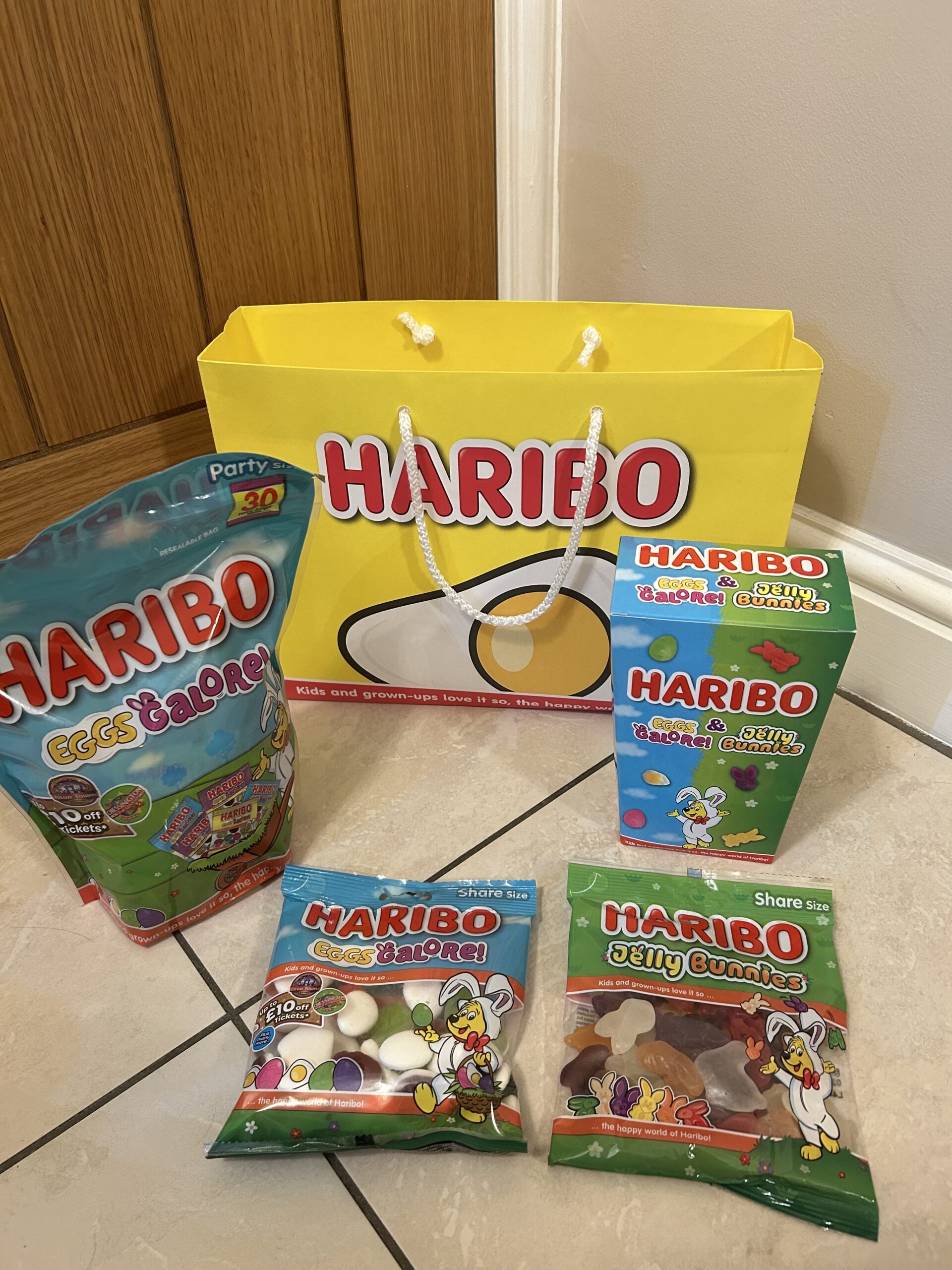 Packed inside a bold official Haribo gift bag, this cheerful set includes a delicious mix of Easter classics and share-size treats, making it perfect for gifting, sharing… or keeping all to yourself (no judgement here 😉).